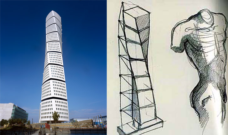 Santiago Calatrava’s Turning Torso building’s unique design consist of nice cubes twisting towards the waterfront and surrounding. The concept is a man’s figure.